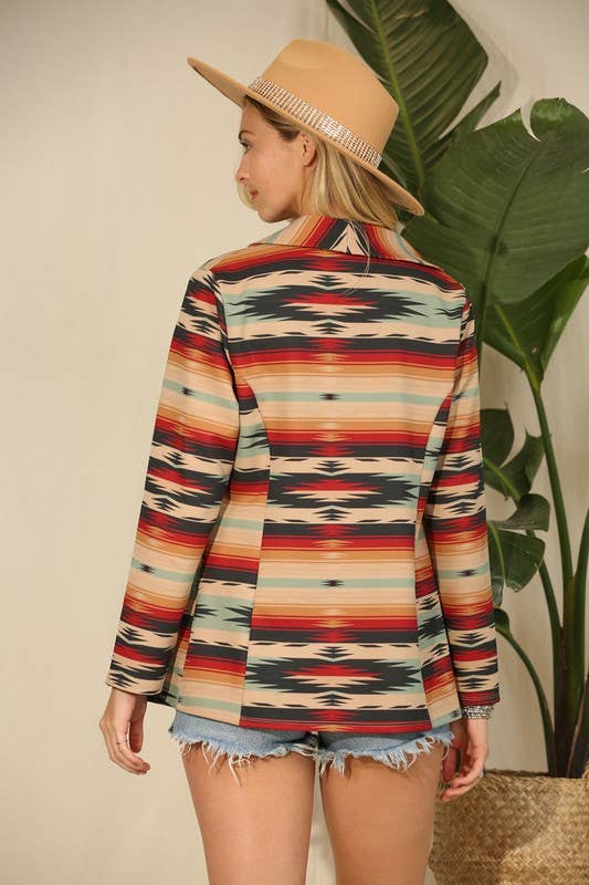 The Southwest Aztec Blazer is a fashionable piece that exudes passion for aesthetics and unrivaled craftsmanship. With its distinctive Southwestern design and feel, the blazer offers an unparalleled combination of Chic and Western style, capturing the essence of modern-western fashion.