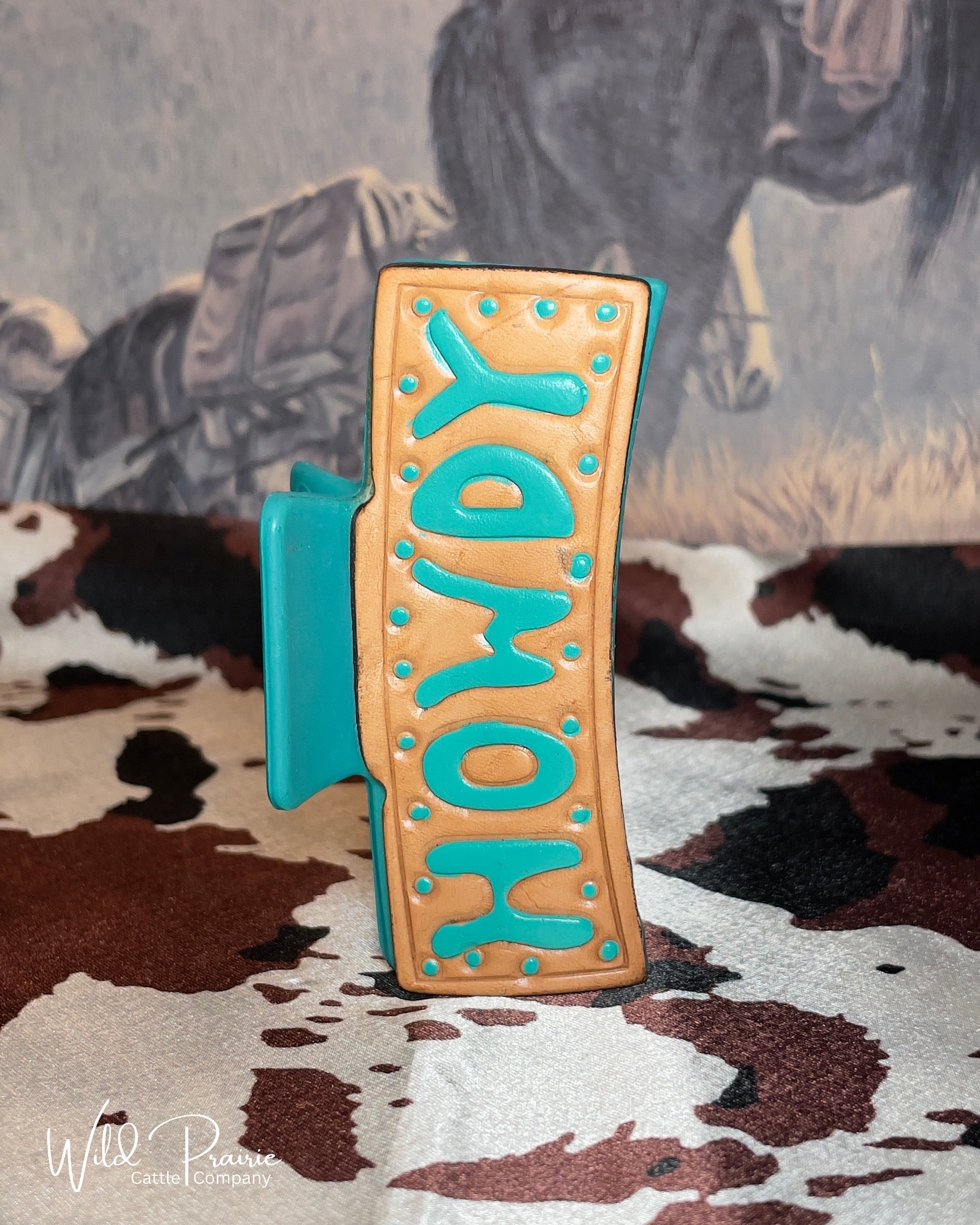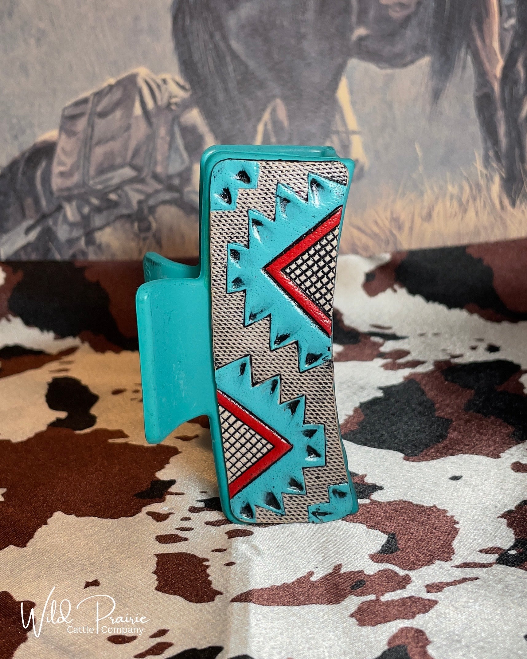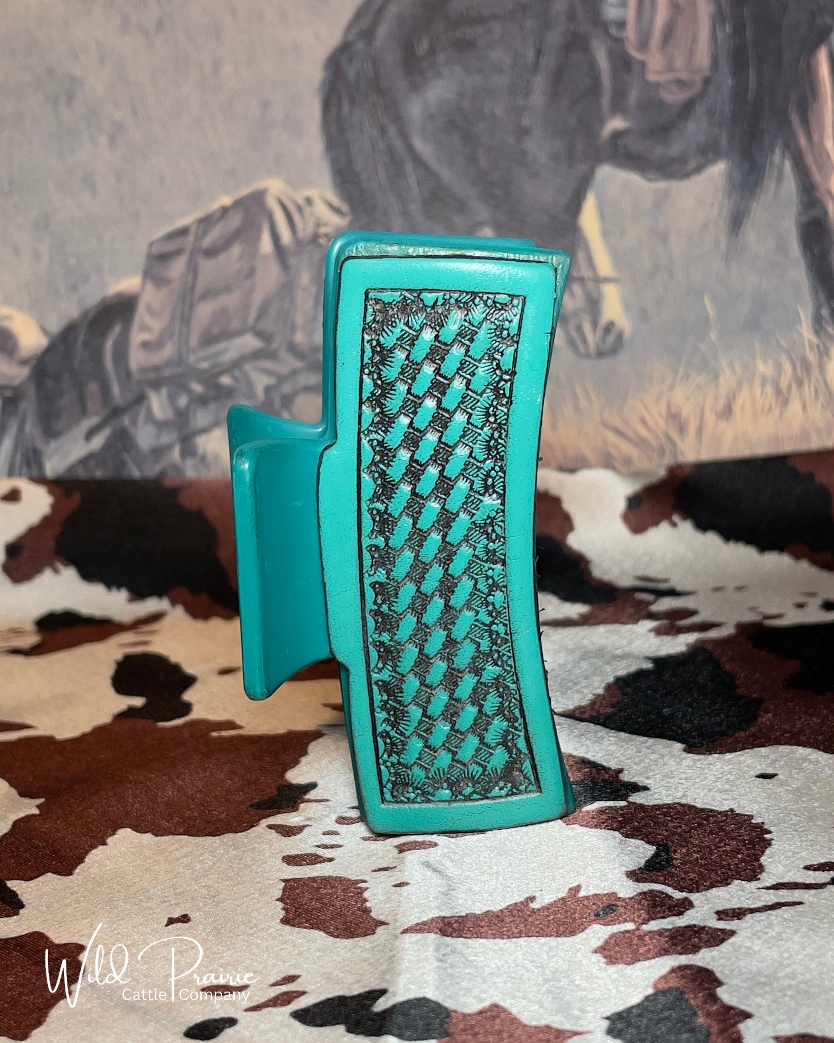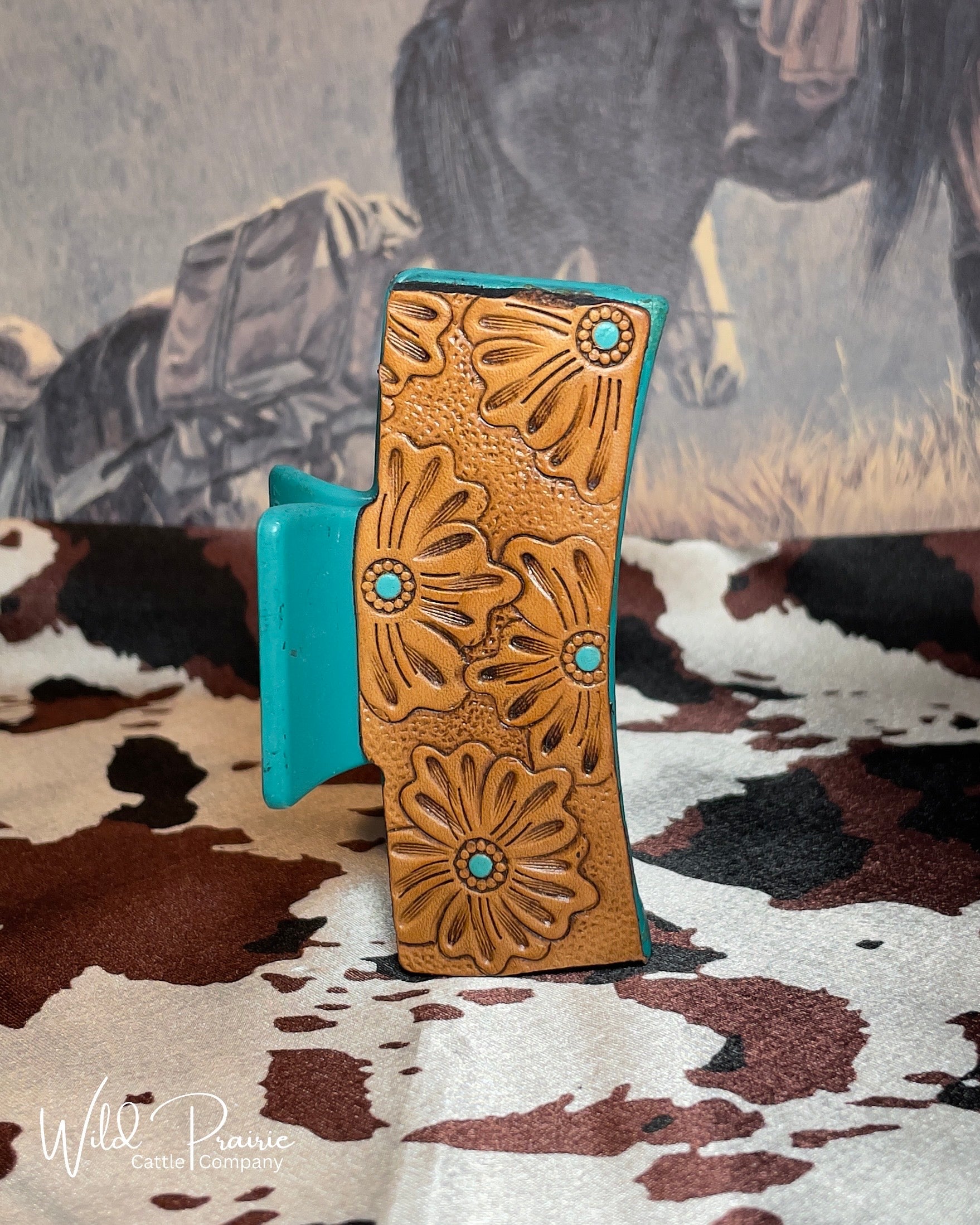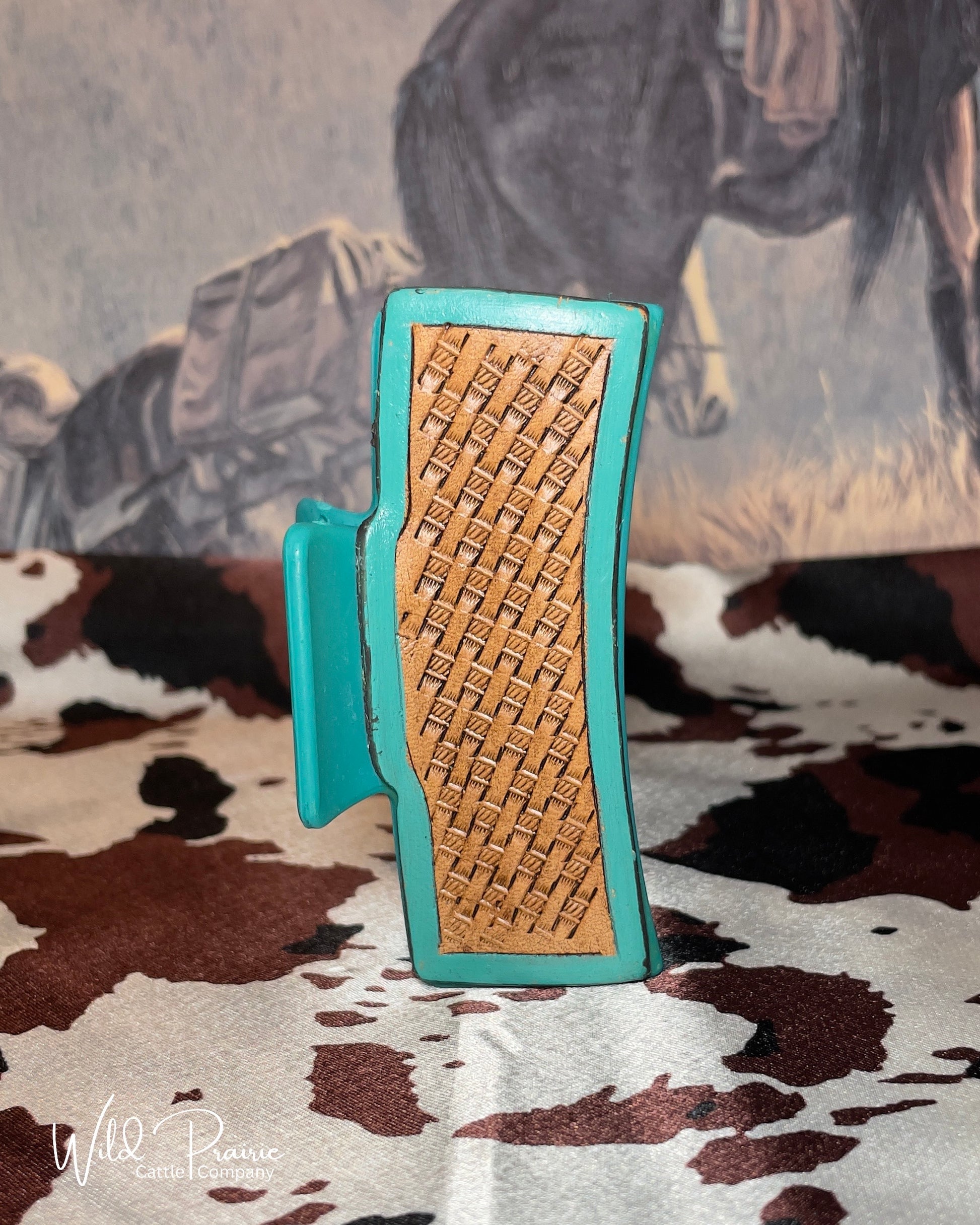 Blue Claw Clip - Tooled Leather