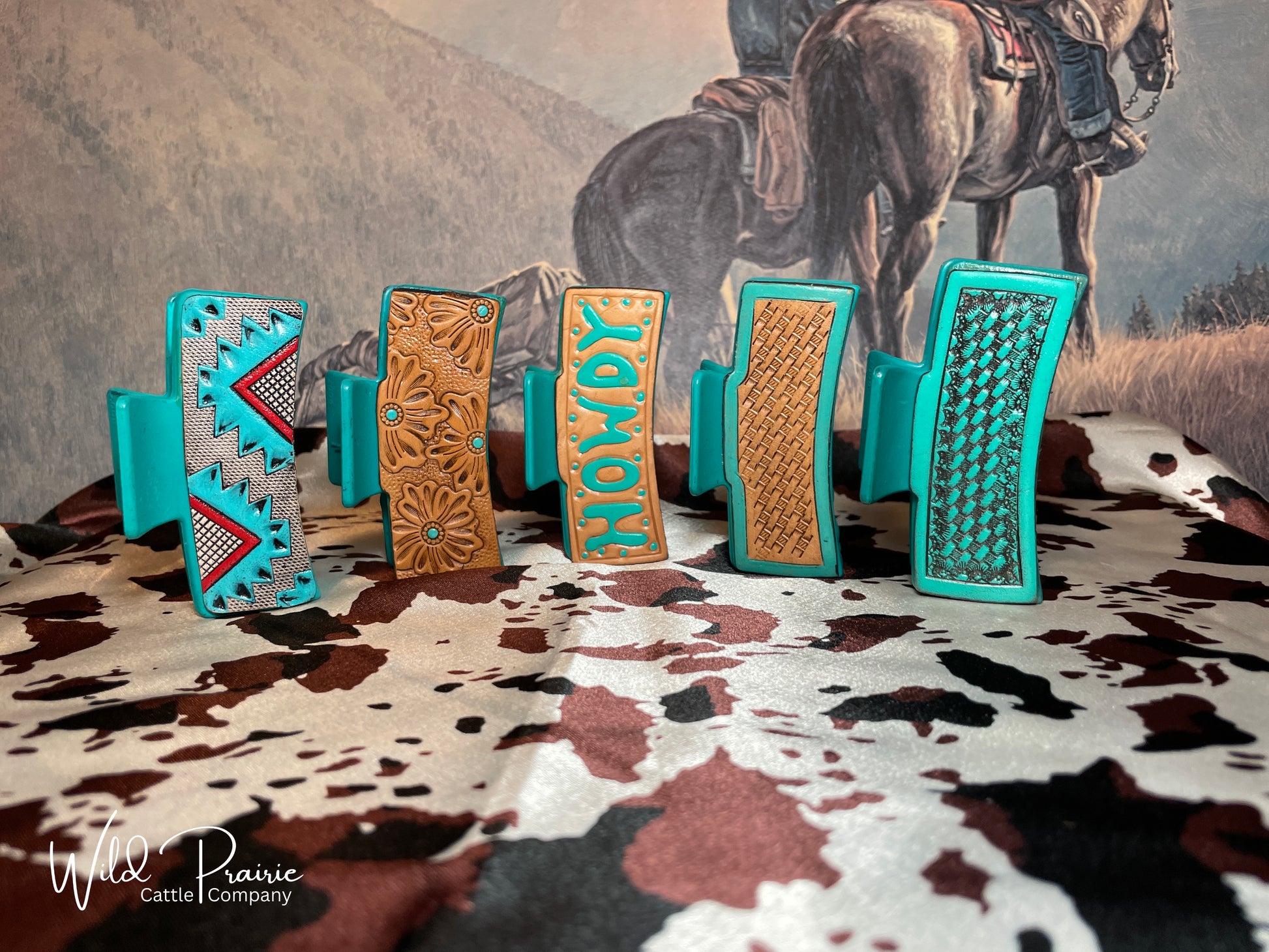 Hand crafted tooled leather hair clips