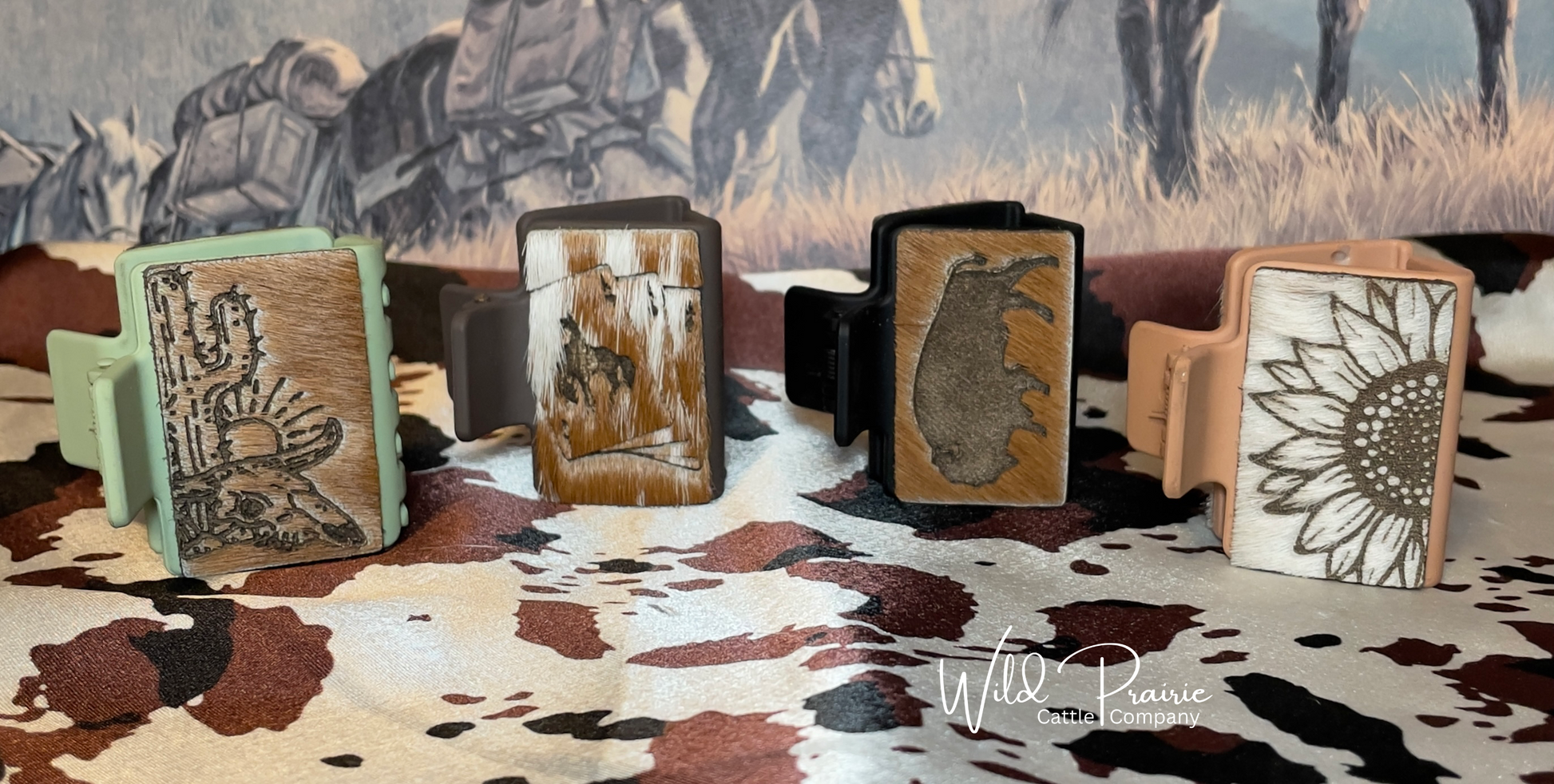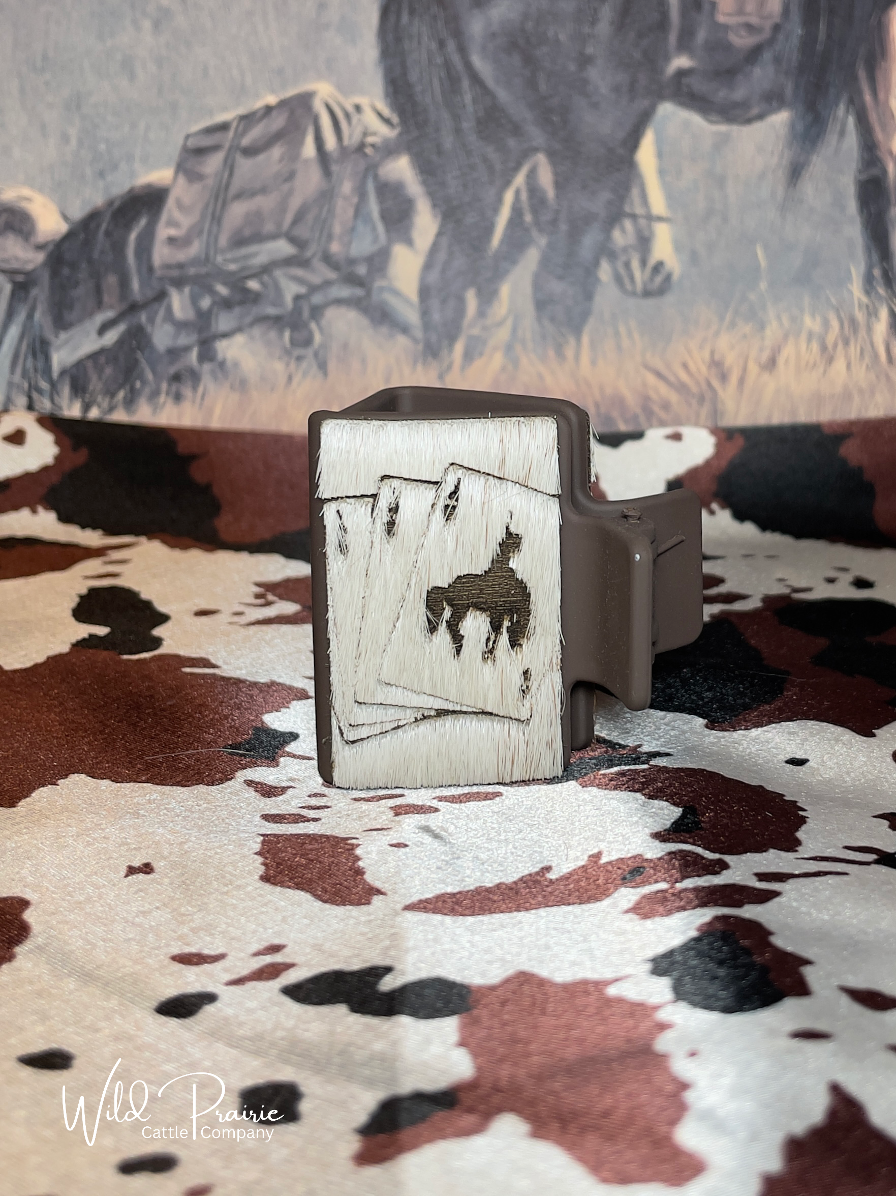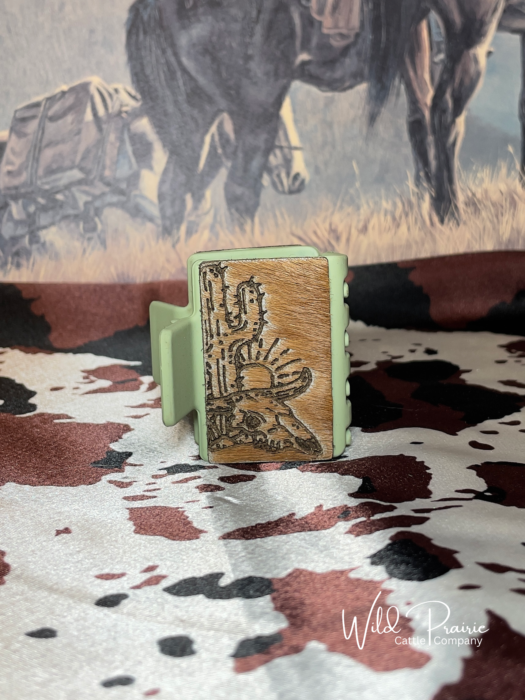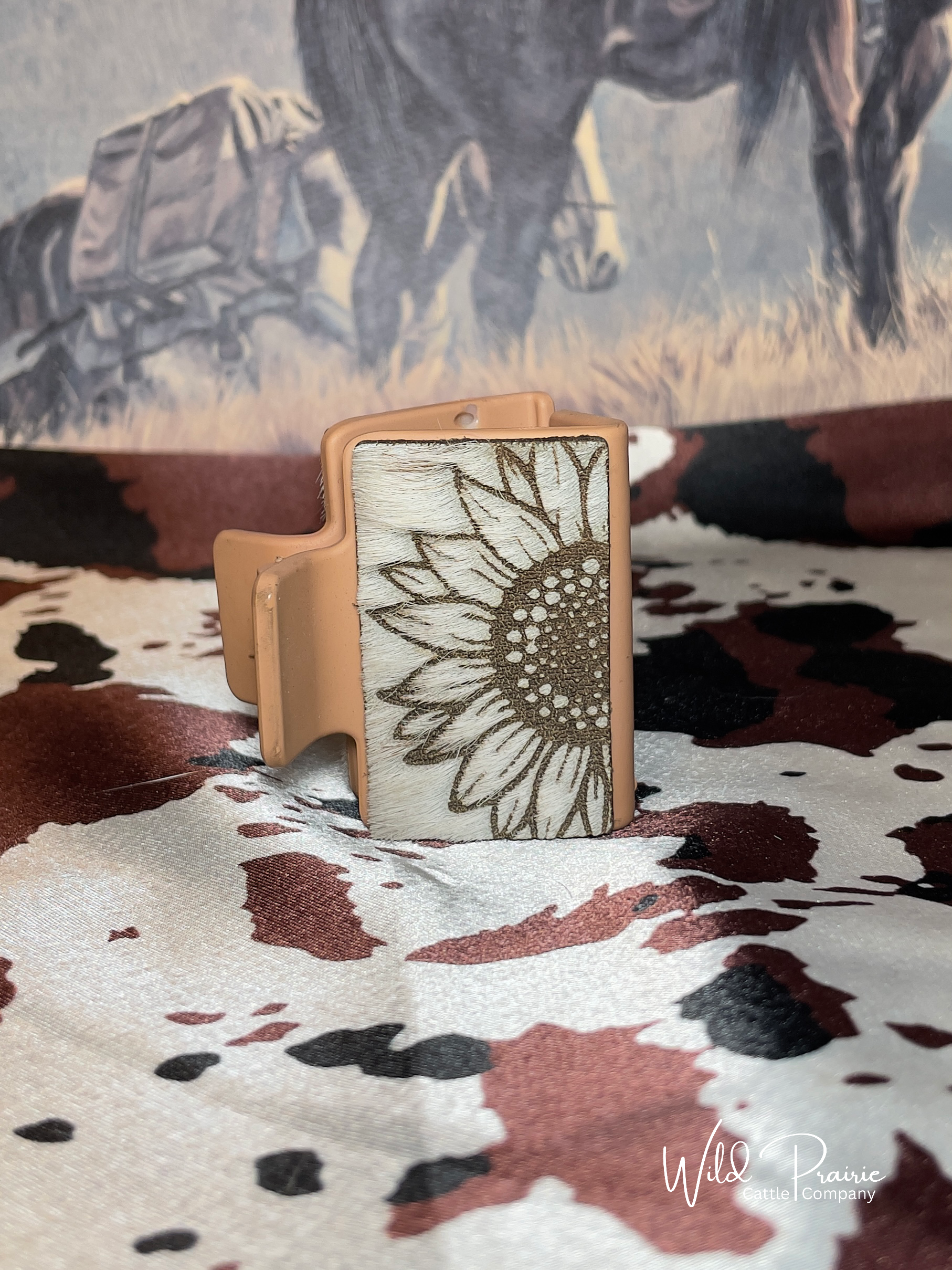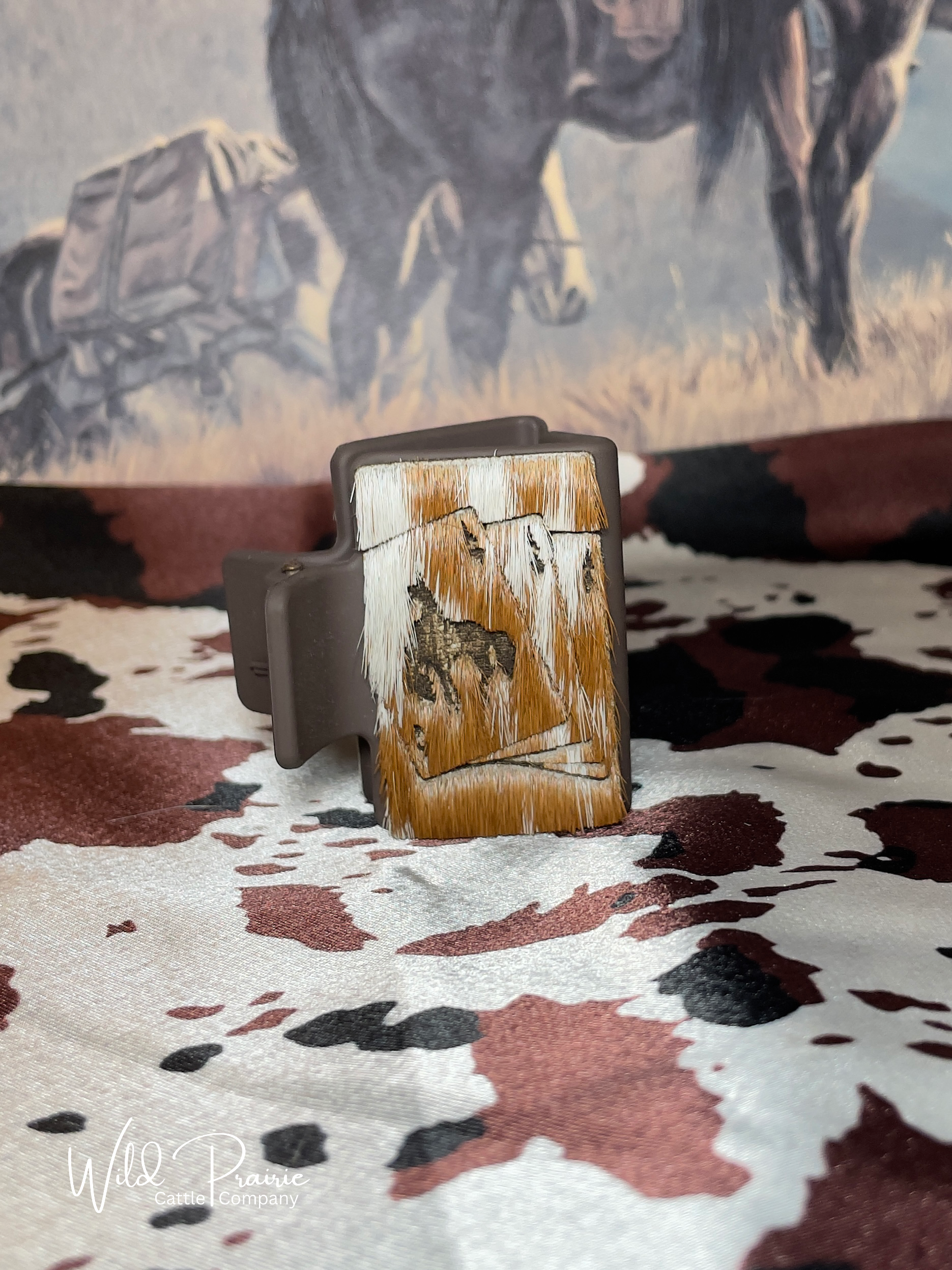 Hand crafted branded hair on hide claw clip