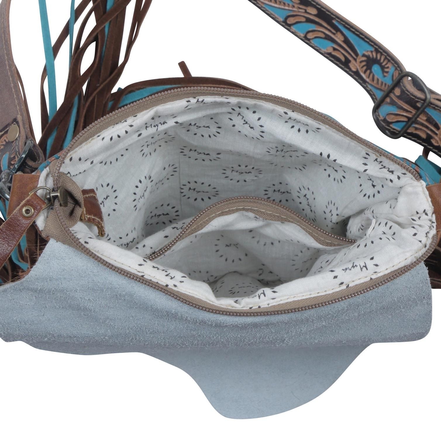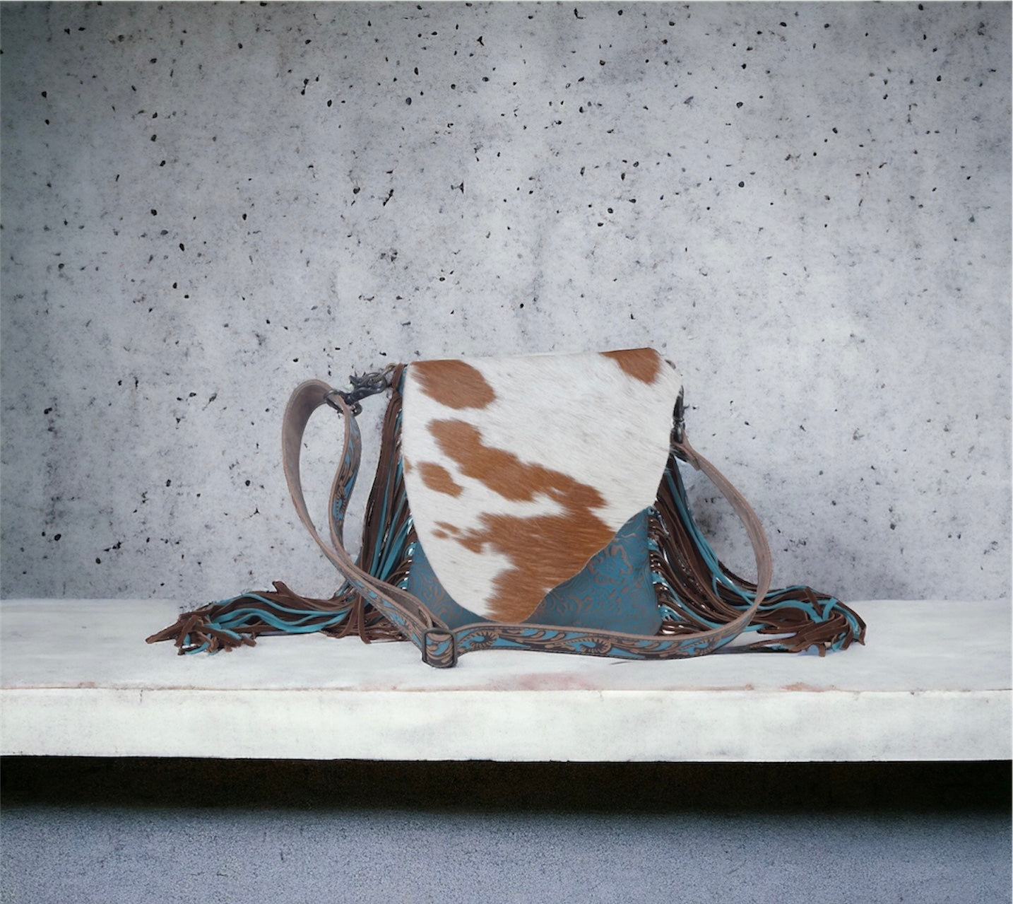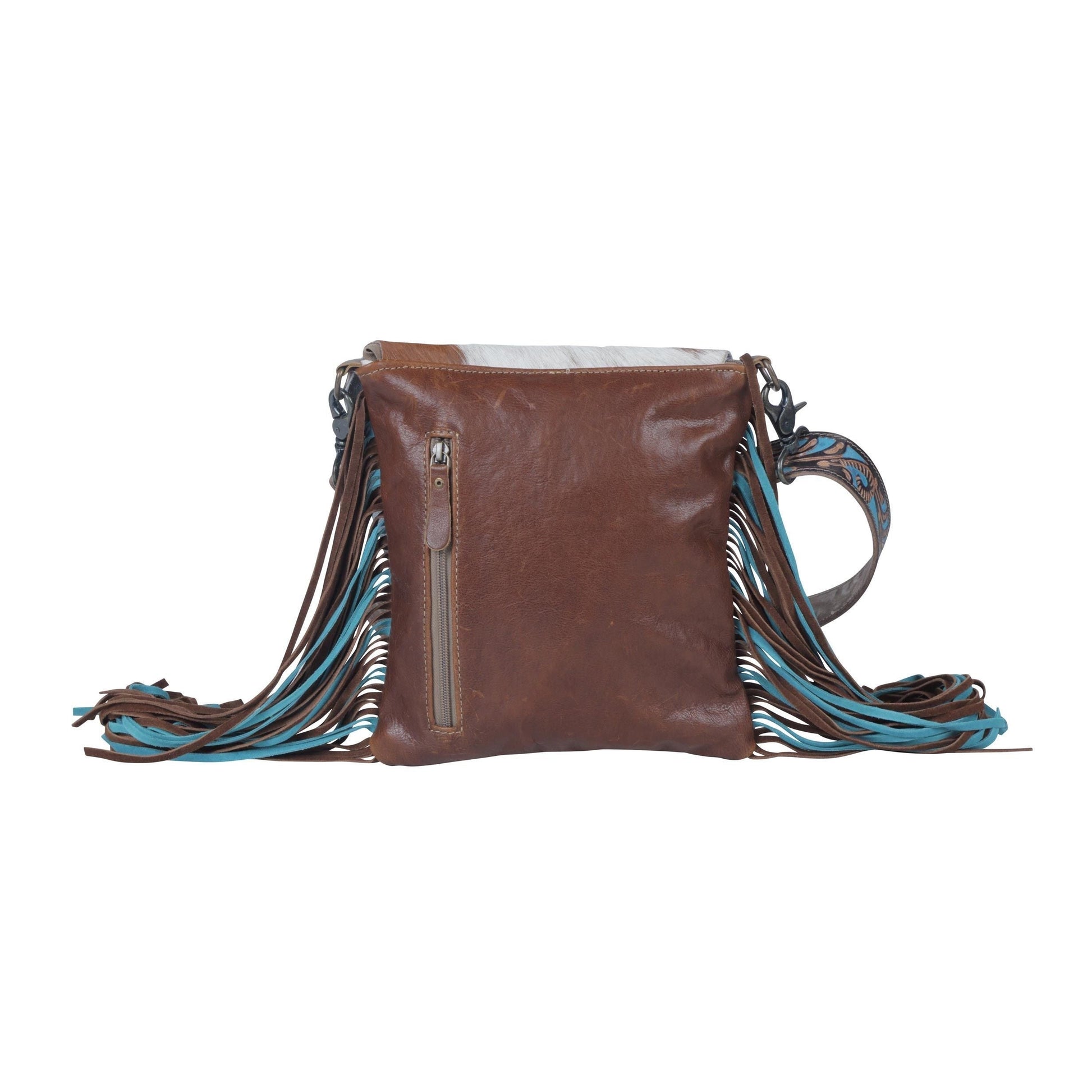 This unconventional cross body bag has a unique flap that is made of cowhide leather which comes with quality assurance. The back panel has a zippered pouch.