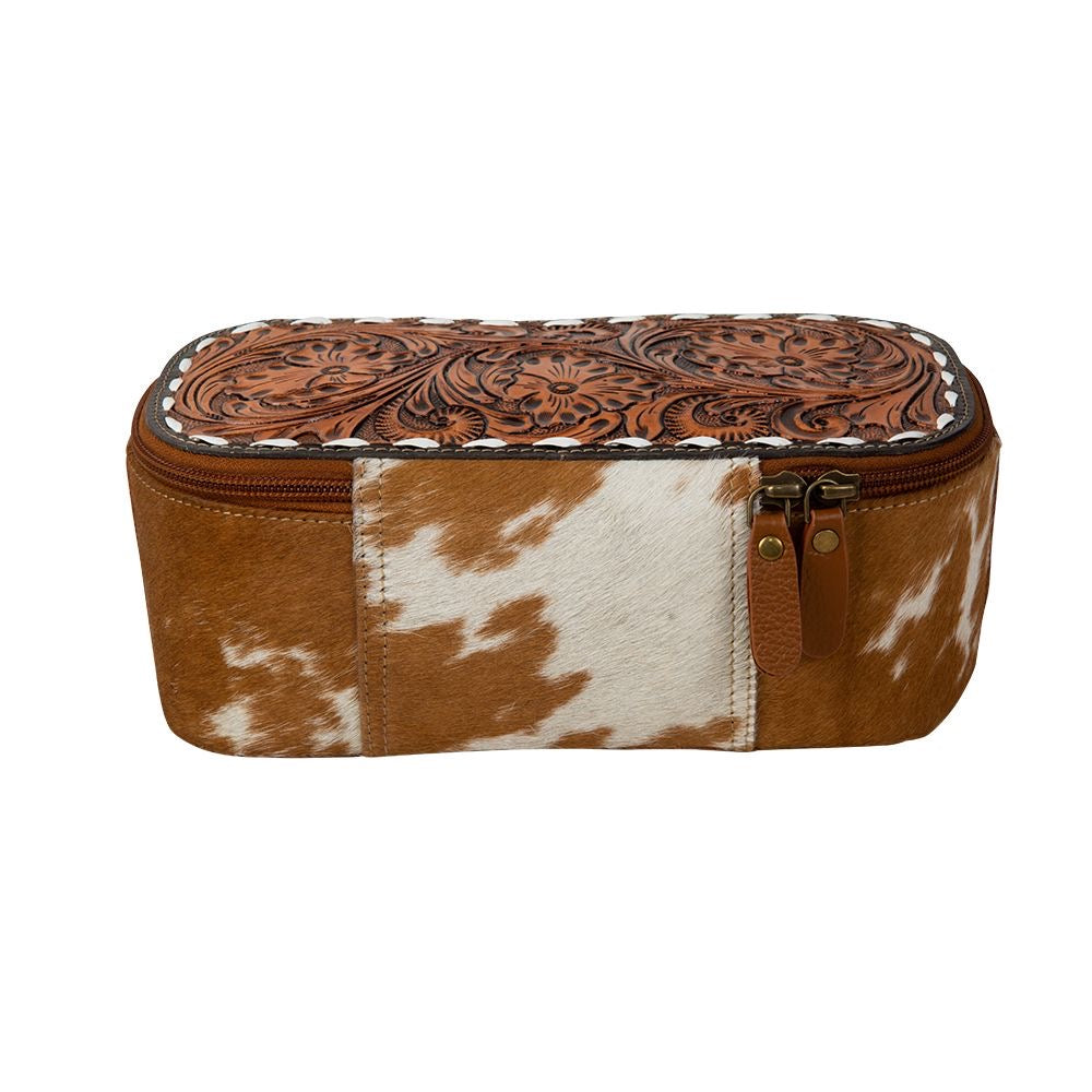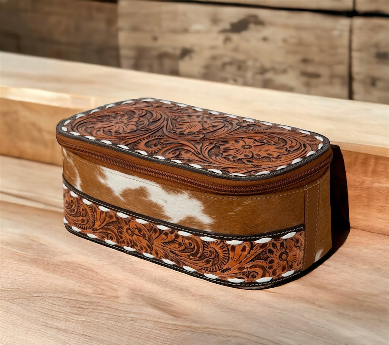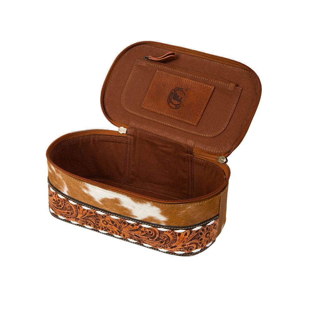 This classic country toiletries bag offers fine hand-tooled leather in the great company of hair-on hide. You’ll have plenty of room to store your items, including in the zippered pocket on the inside lid. Wrap-around zippered closure assures everything stays secure.