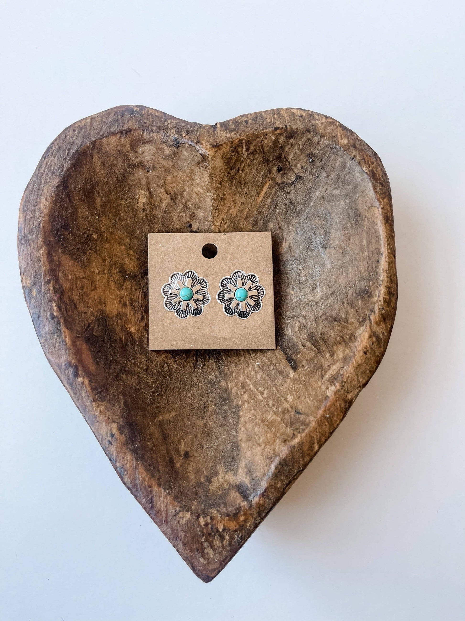 Floral concho stud earrings with turquois stone