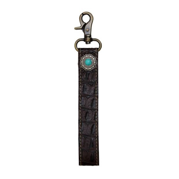 This classy and bold looking wristlet has black base and grey intricate patterns styled onto it. It's a perfect choice for those who love to carry stylish accessories.