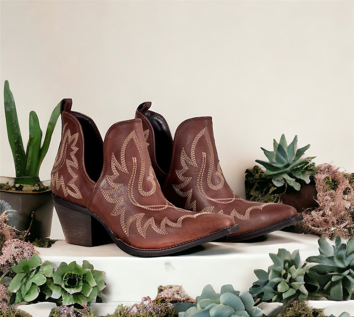 This pair of dark brown boots with subtle golden strings of patterns on top will be a perfect choice for a party night with your gang!