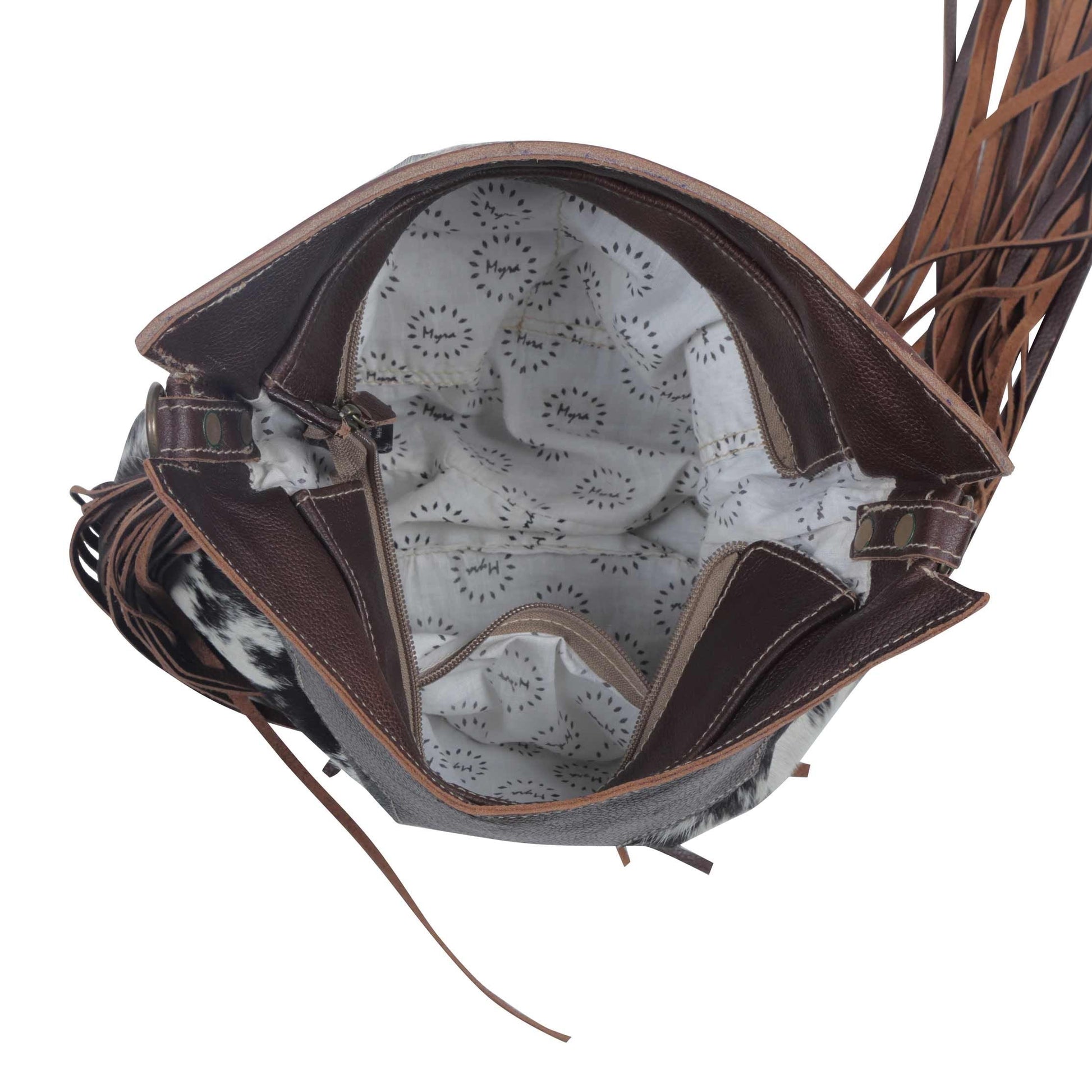 The brilliant embossed leather on the top adds an eye-catching sparkle to the bag. Illuminate your look with this bag which comes with a zippered top and a zippered pocket on the backside.