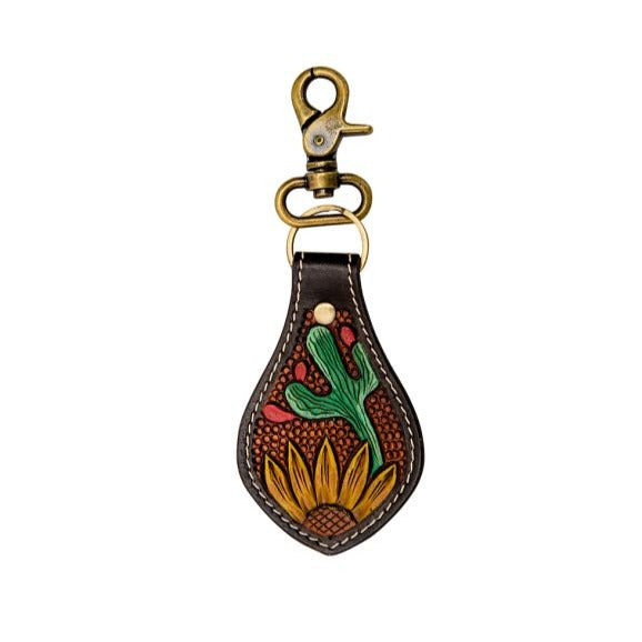 Cute hand-tooled sunflower and cactus keychain for your keys!