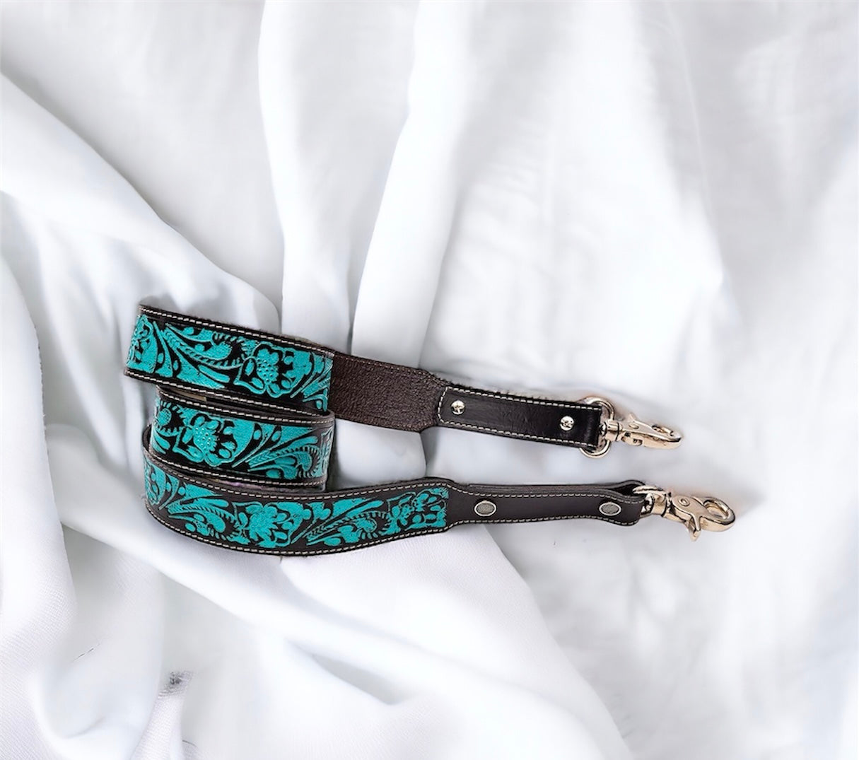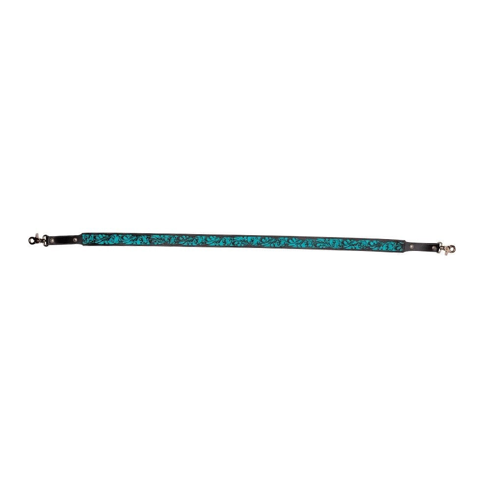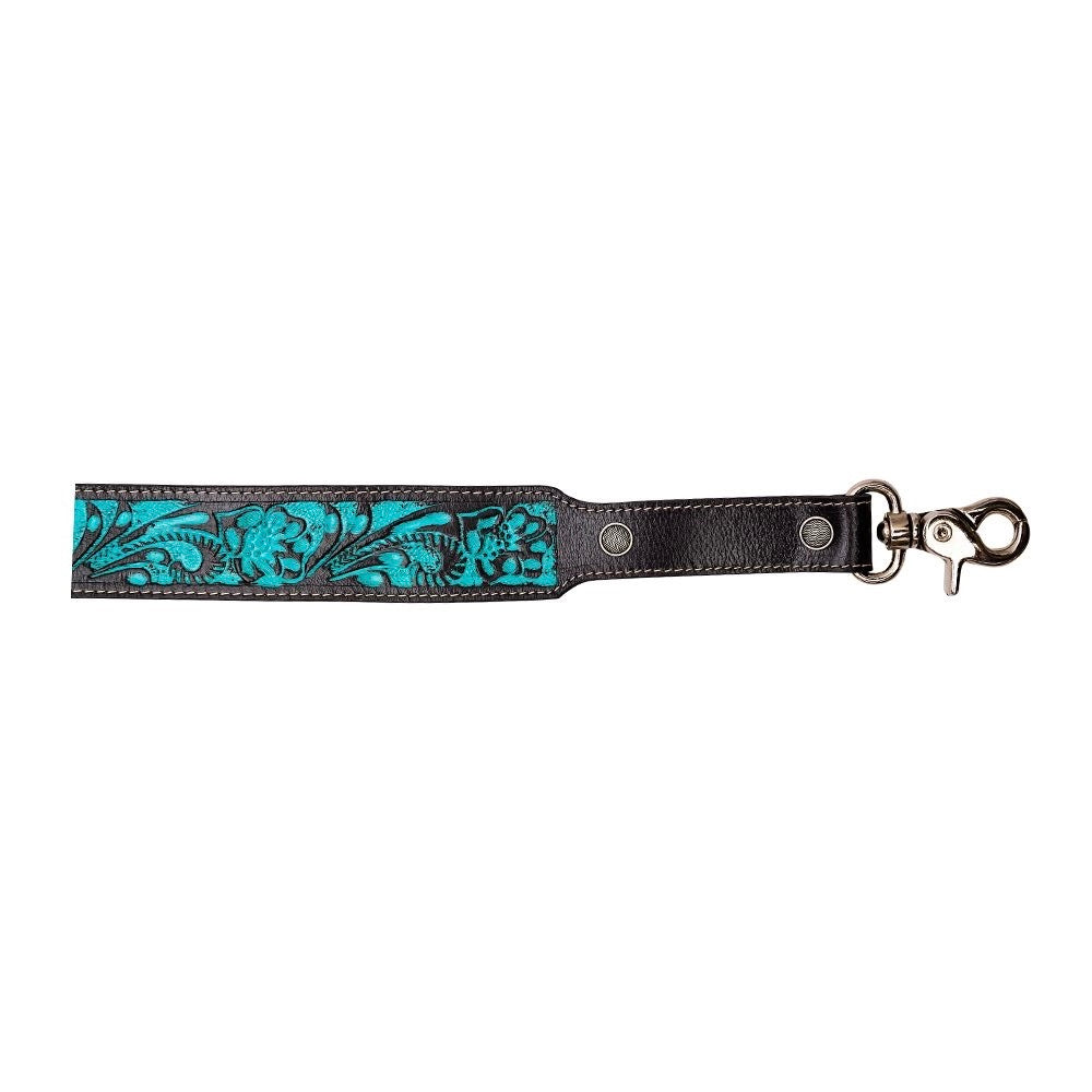 The striking turquoise color, and the beautiful pattern in the detailed hand-tooling, make this ebony leather simply stunning! Clasps at both ends for a secure fit.