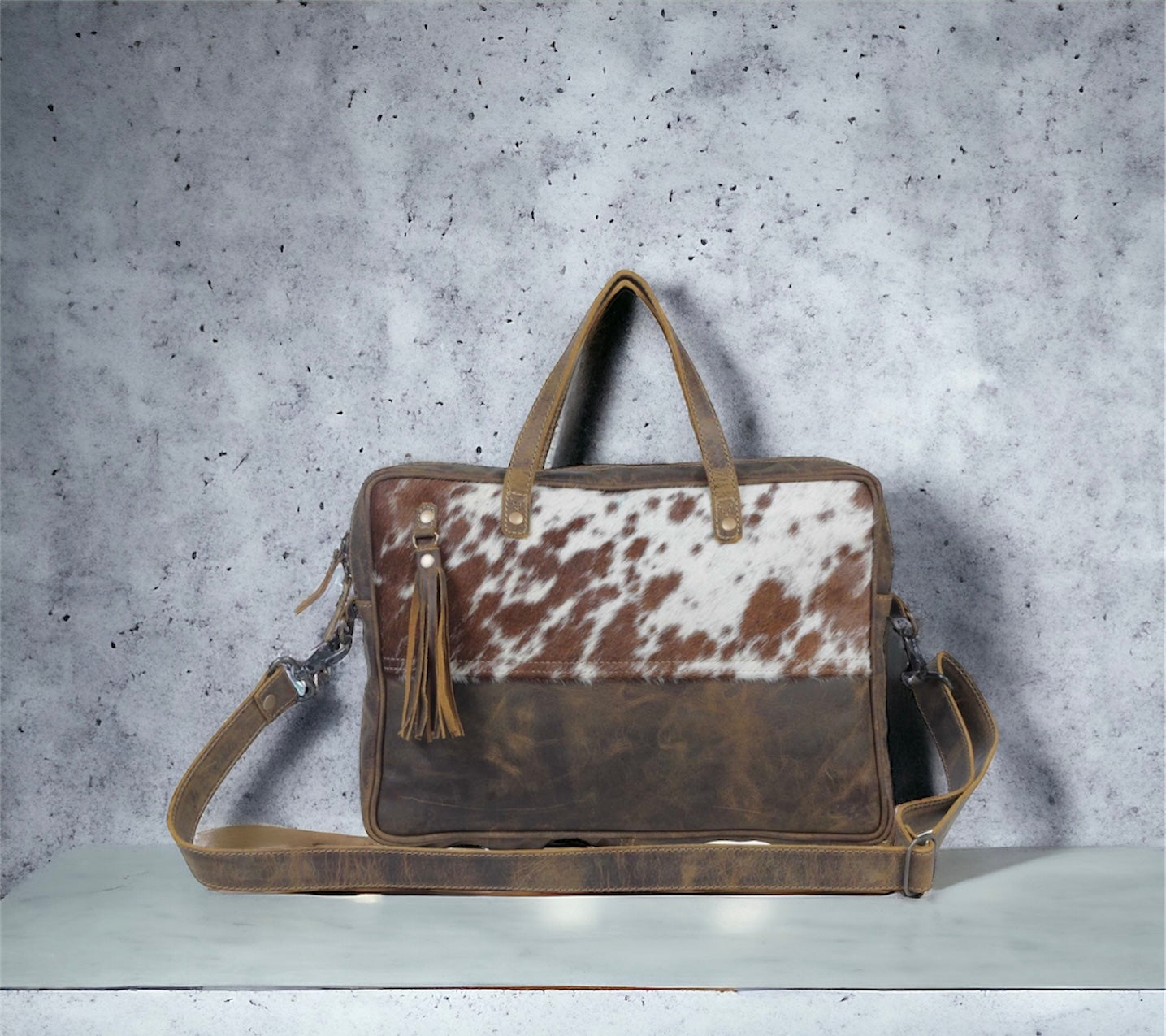 The brown hues of the bag lend a tranquil quality to it. Ample space, zippered compartments and adjustable leather strap is what makes this bag a complete package.