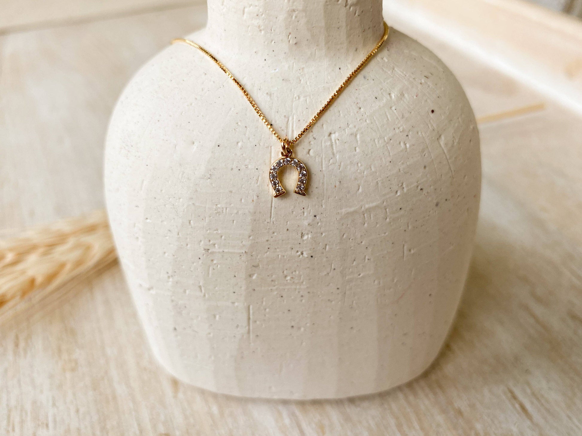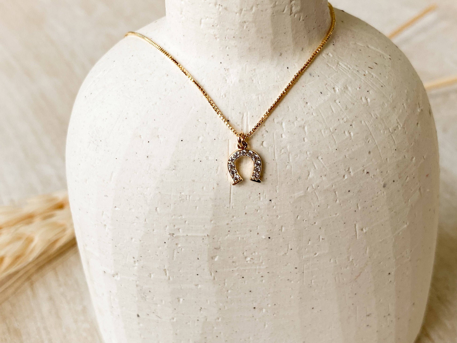 A little luck with a lot of shine. The Delilah Necklace features a gold-plated horseshoe pendant accented with sparkling stones for a modern take on a timeless western symbol.
