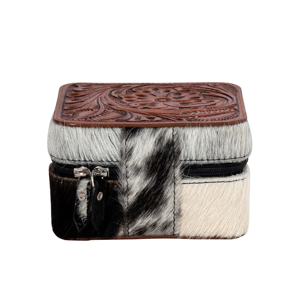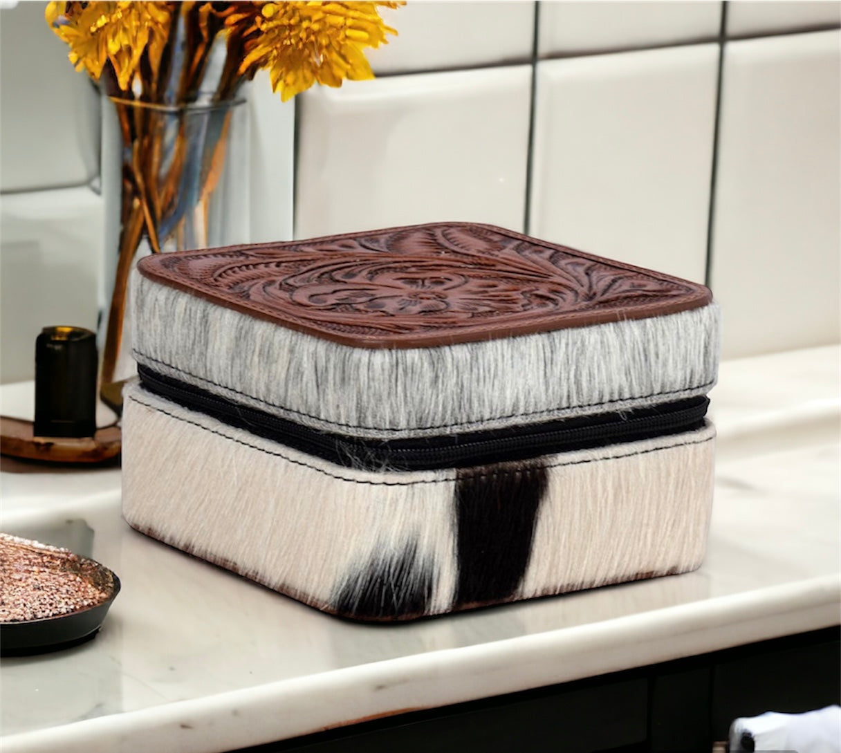 With its delightful combination of hair-on hide and hand-tooled leather, this wonderful storage box will become a favourite in your home, office or even travel collection. Features two contrasting hair-on hide patterns in light/dark tones; topped with finely crafted hand-tooled leather.