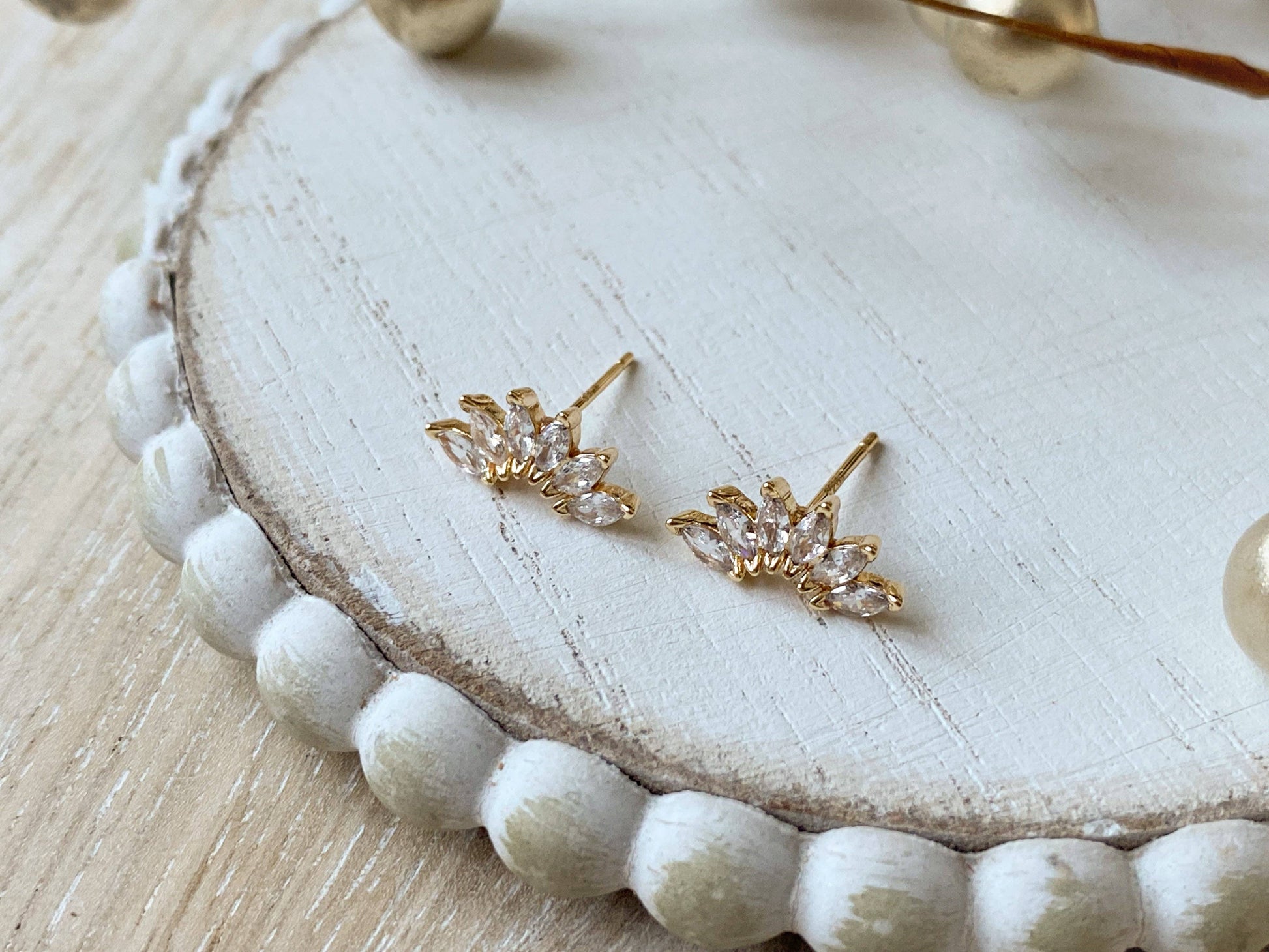 Soft western charm meets timeless sparkle. The Lena Studs feature marquise-cut stones arranged in a graceful fan design, giving them a subtle glow that catches the light just right.